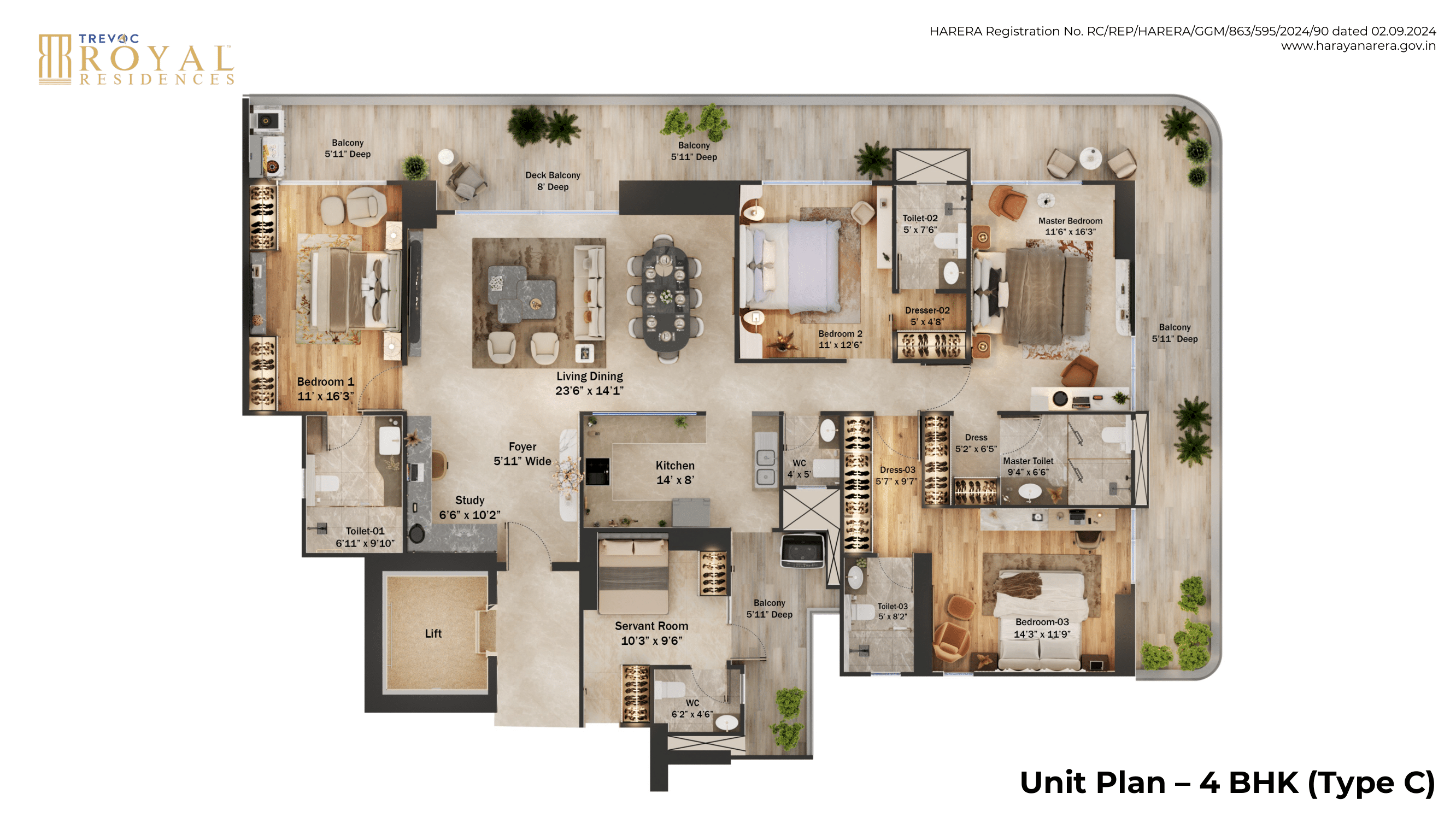 The landscape spans three levels Ground, 4th, and Skydeck creating a serene haven that shields you from the city’s hustle and bustle. This thoughtfully crafted environment invites a refreshing microclimate into your home, providing a perfect blend of natural beauty and urban sophistication.